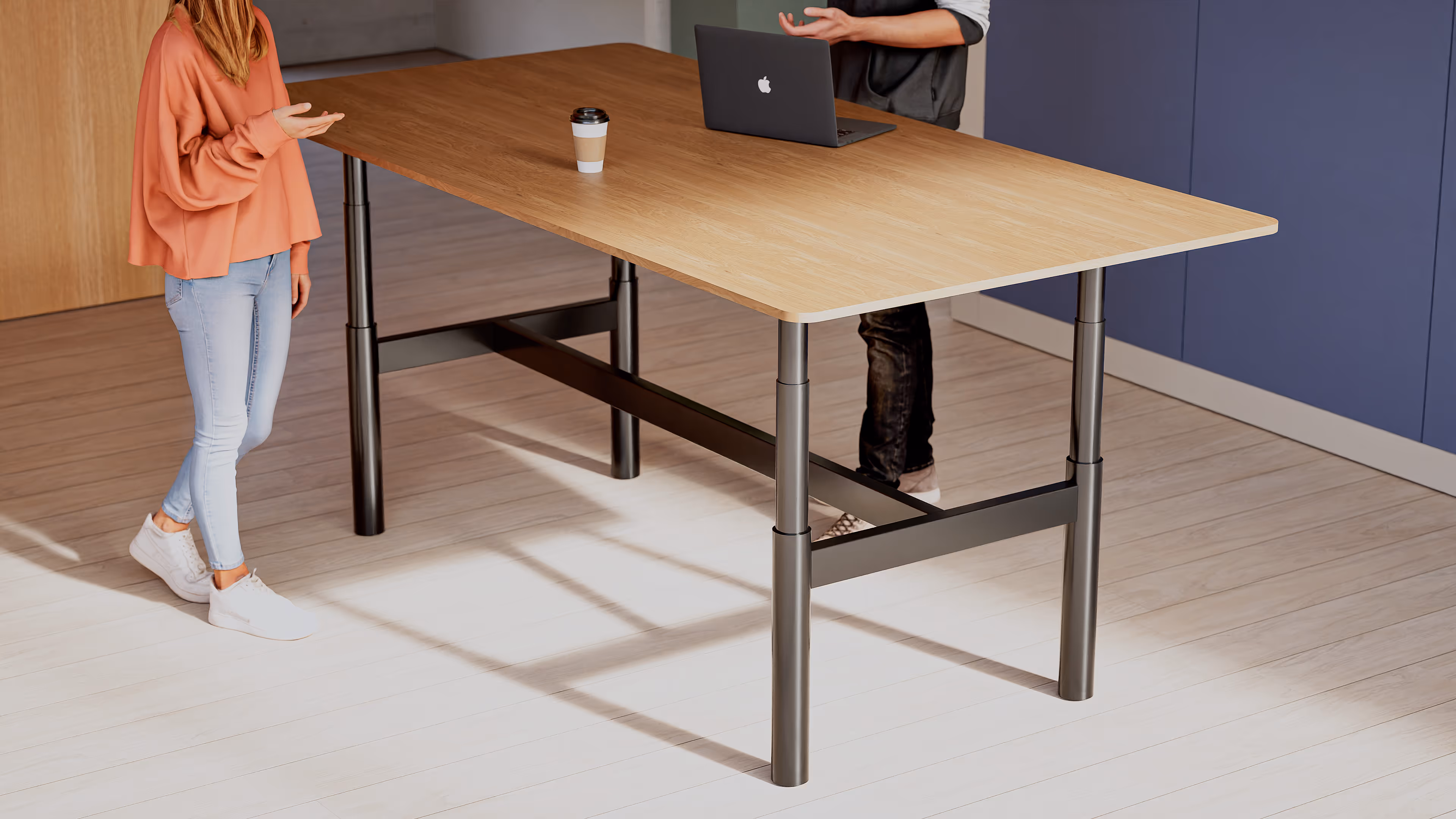 A fusion of form and function, the Rise height-adjustable meeting table enhances any space with its sleek, adaptable design.
